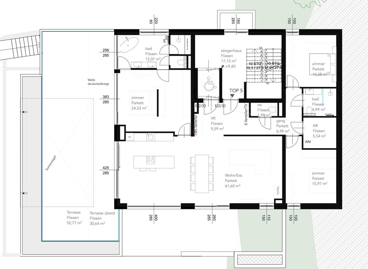 Äußerst hochwertige und geschmackvolle Materialien und Armaturen lassen keine Wünsche offen. Die Beheizung erfolgt über eine effiziente Luftwärmepumpe. Die installierte kontrollierte Wohnraumlüftung sorgt stets für frische Luft. Die PV-Anlage auf dem Dach wird für die Wärme- und Kühlenergie der Hausgemeinschaft genutzt. Dies unterstreicht den hohen energietechnischen Standard dieser Immobilie. Natürlich sind die Fenster mit einer Beschattung versehen, um das Raumklima optimal zu regulieren. Darüber hinaus ist ein stylishes Sonnensegel zur Beschattung installiert.
