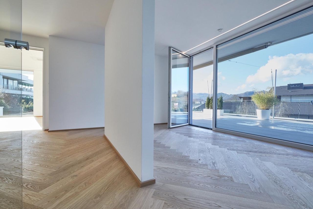 Eingebettet in einen Hang liegt dieses wunderschöne und architektonisch ansprechende Neubauprojekt in Gmunden.