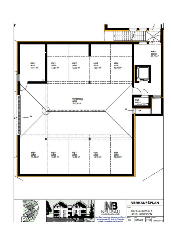 Diese Immobilie enthält zwei Tiefgaragenstellplätze die um einen Mietpreis von 100€ +USt. pro Parkplatz und deren Betriebskosten im Preis mit inbegriffen sind.