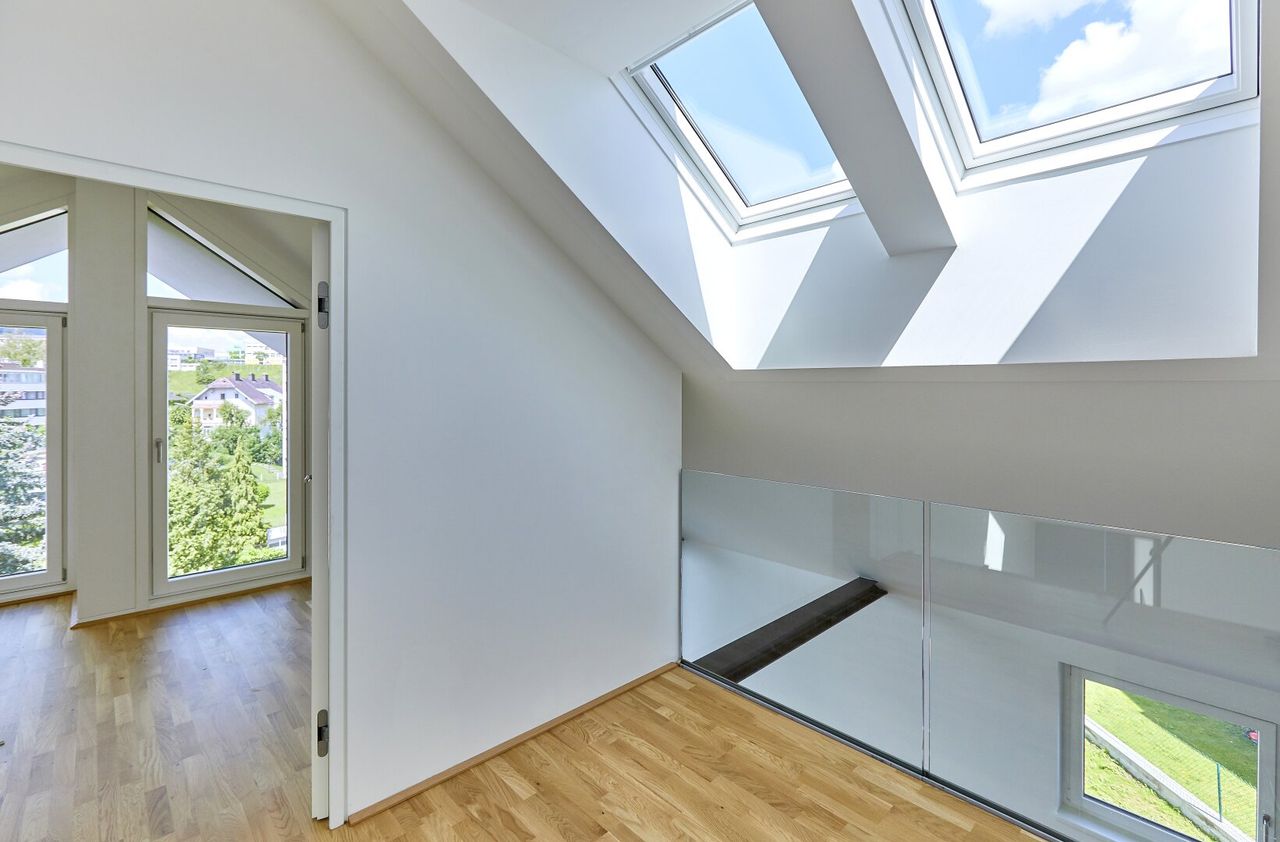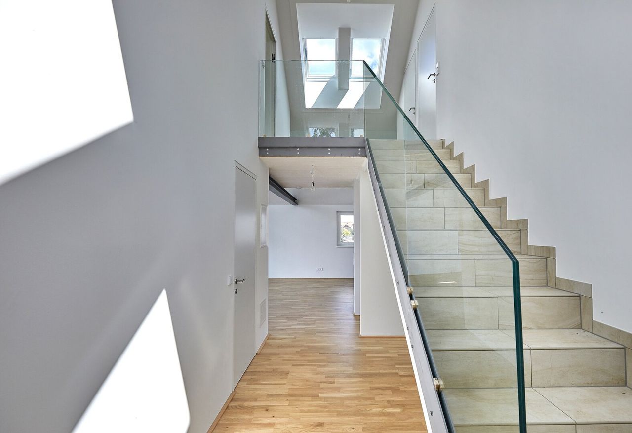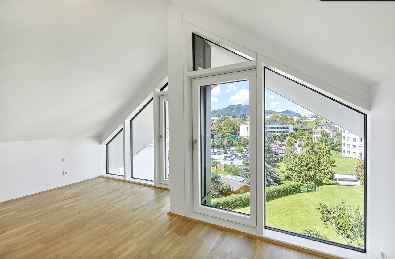 Ein weiteres Merkmal dieser Wohnung ist die traumhafte sonnige Terrasse mit ca. 22m², welche Ihnen einen atemberaubenden Ausblick über die Stadt und die umliegende grüne Landschaft bietet. Auch die stockwerkübergreifenden Fensterflächen öffnen Ihnen den Blick ins Grüne und holen die ruhige Umgebung direkt in Ihr neues Zuhause.