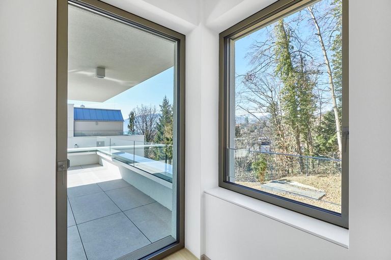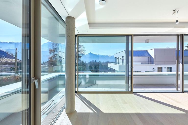 + hochwertige Alu-Elemente von Josko ONE, teils rahmenlos und sehr schmal, barrierefrei