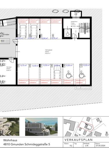 Diese Immobilie enthält zwei Tiefgaragenstellplätze die um einen Mietpreis von 100€ +20USt. pro Parkplatz und deren Betriebskosten im Preis mit inbegriffen sind. Bei bedarf besteht die Möglichkeit einen weiteren Stellplatz für den selben Preis anzumieten.