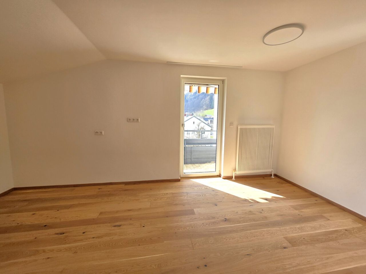 - Großzügiges Wohnzimmer mit Zugang zum Balkon und schönem Gebirgsblick