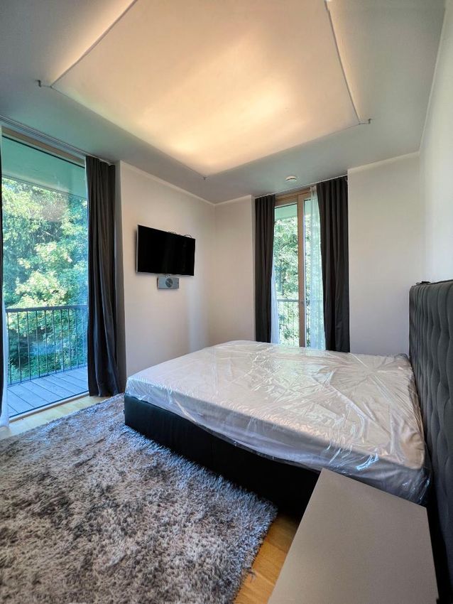 Diese hochwertig möblierte Mietwohnung mit ca. 130 m² Wohnfläche befindet sich im 2. Obergeschoss (Haus 3) der Parkvillen Altmünster und ist selbstverständlich barrierefrei per Lift erreichbar.