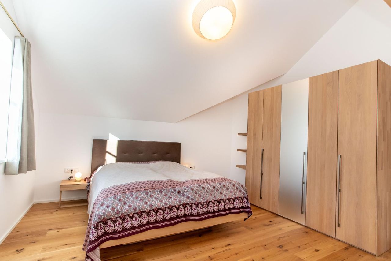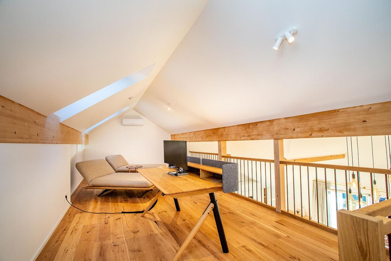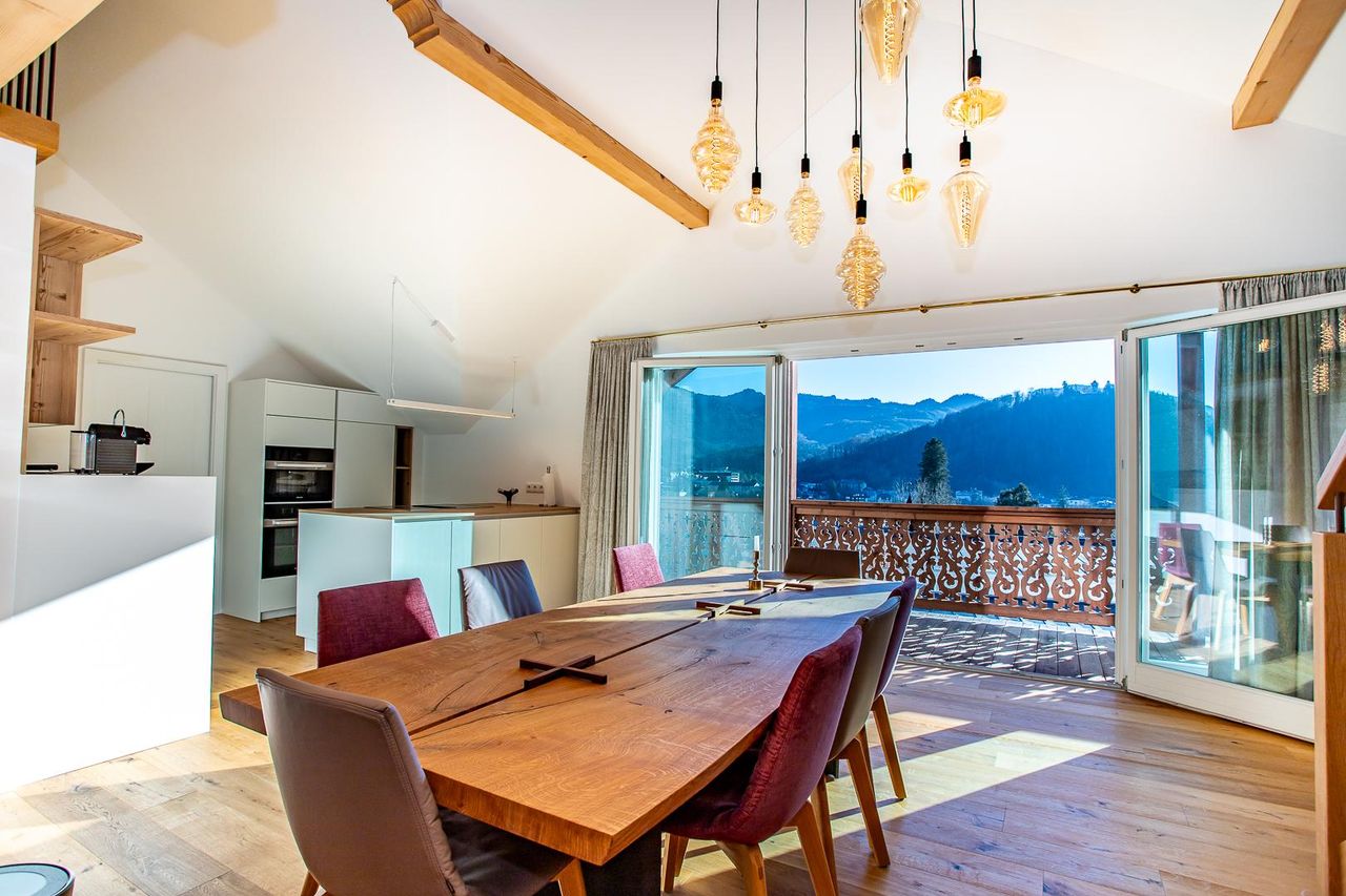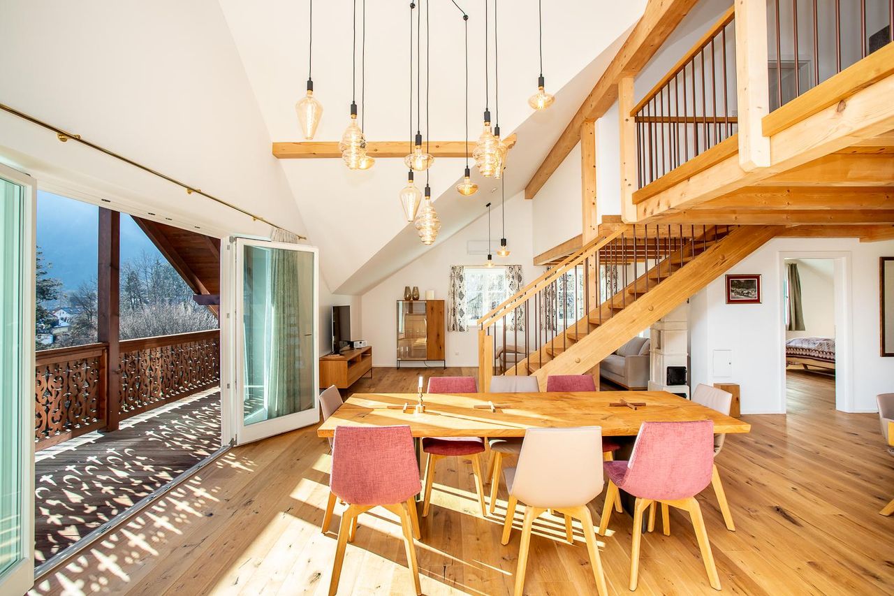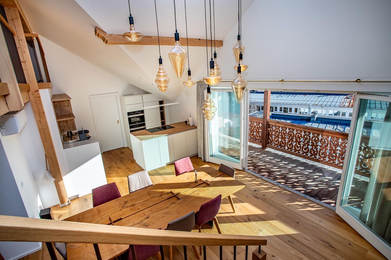 Diese sehr helle, top sanierte Wohnung mit eigener PV - Anlage bietet rund 169 m² Wohnnutzfläche auf zwei Ebenen sowie einen süd-östlich ausgerichteten Balkon (ca. 18 m²) und eine separate Terrasse (ca. 11 m²) mit Zugang zum Lift. Sie befindet sich im 2. Stock einer vor kurzem umfassend sanierten Stadtvilla in zentraler Lage von Bad Ischl, am Fuße des Kalvarienberges – mit traumhaftem Blick über die Kaiserstadt Richtung Siriuskogl und Katrin.