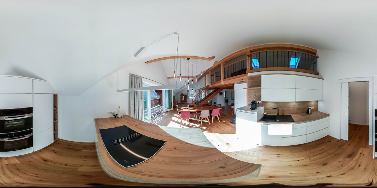 • Sehr großer, lichtdurchfluteter Wohn-/Essbereich mit Zugang zum Balkon und integrierter Küche