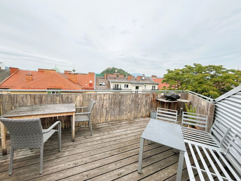Wer das Leben in der Stadt liebt, wird diese Wohnung in der Kaiserfeldgasse 22, 8010 Graz schätzen: Mitten in Graz, im charmanten Dachgeschoss eines gepflegten Hauses, wartet diese großzügige 2-Zimmer-Wohnung mit Terrasse und freiem Blick auf den Schlossberg auf neue Bewohner*innen.