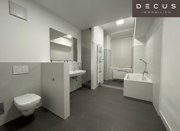 - Großzügiges Bad mit WC, Doppelwaschbecken, Dusche und Badewanne