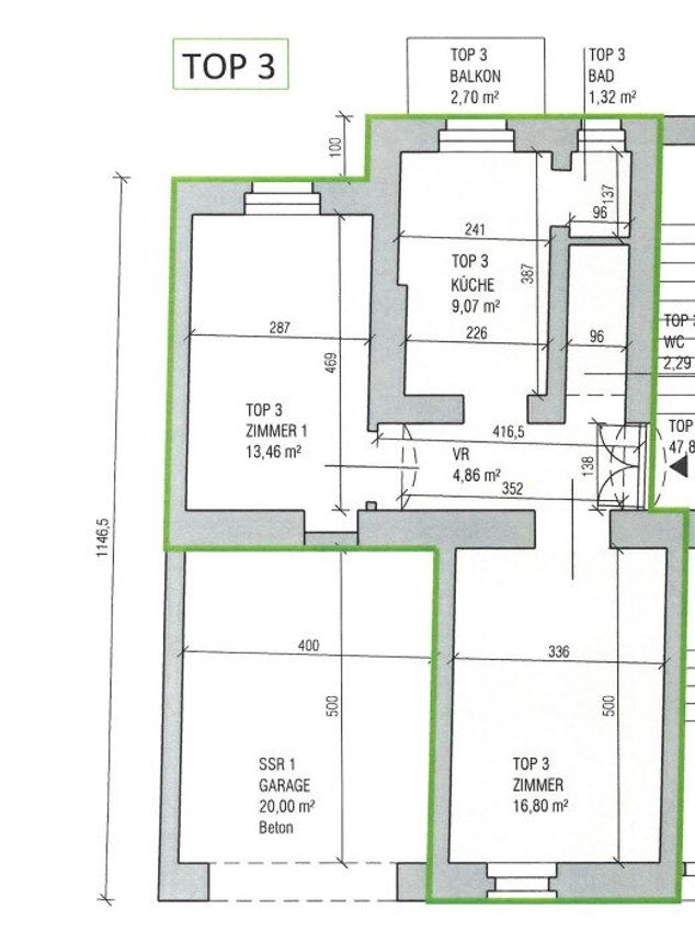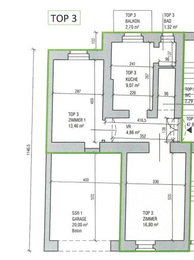 Die Wohnung befindet sich im Parterre und verfügt über 47,80 m²: