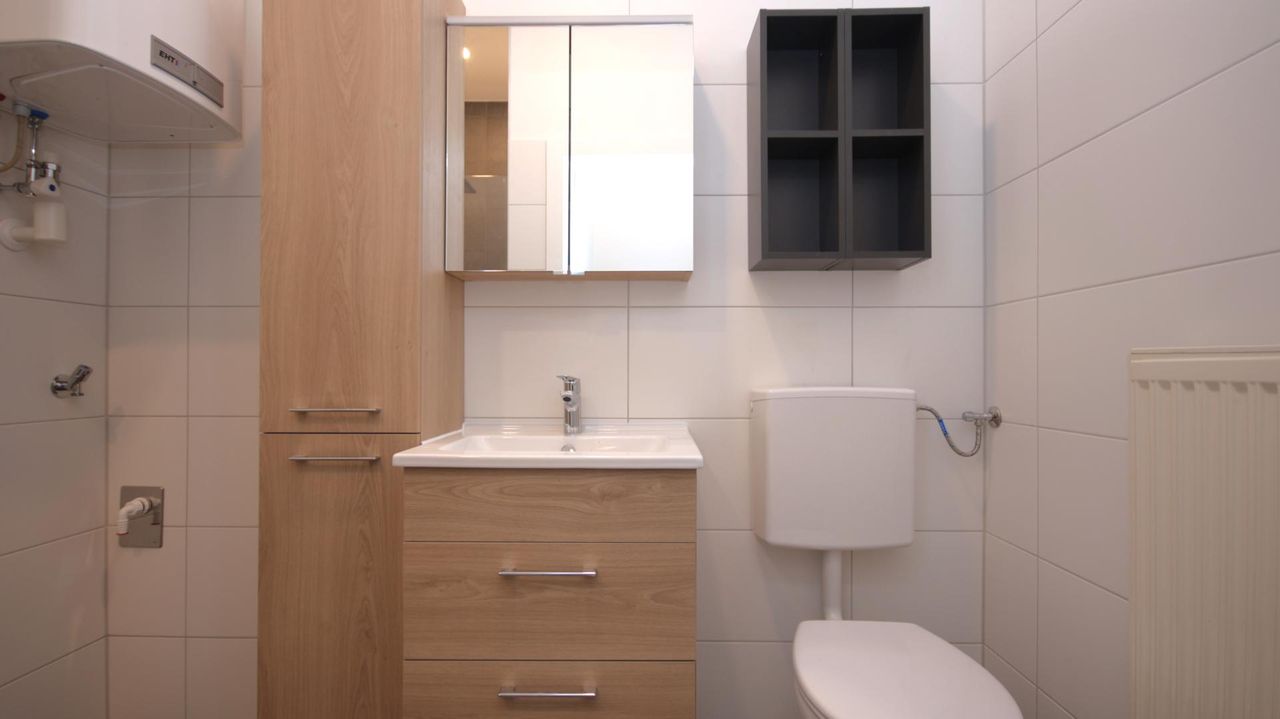 Die Küche ist modern und funktional ausgestattet. Das Badezimmer verfügt über eine Dusche, WC sowie einen Waschmaschinenanschluss.