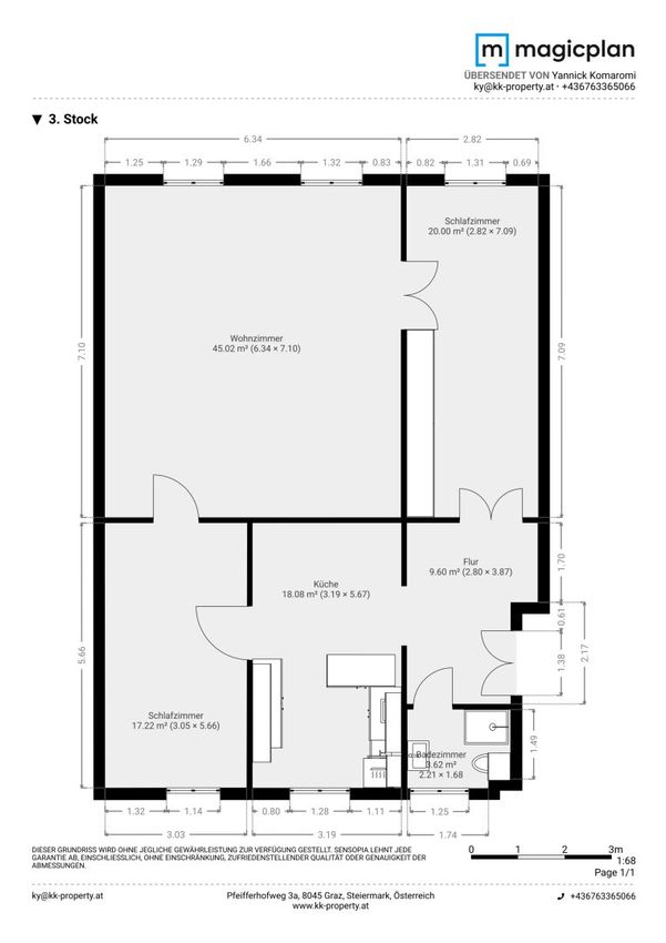 Die monatliche Miete beträgt € 1.368,90 inklusive Betriebskosten. Die sonstigen Kosten bestehen aus Heizkosten und Stromverbrauch.
