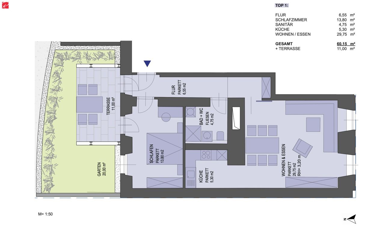 - 60,2 m² Wohnfläche im Erdgeschoss