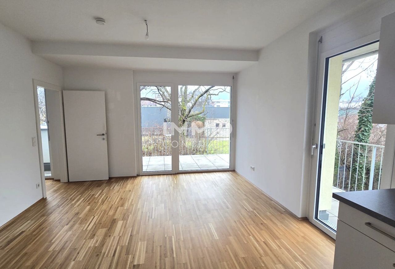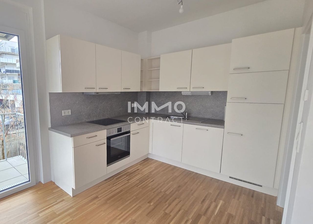 Diese ca. 40,67 m² große 2 Zimmer-Wohnung befindet sich im 1.OG des Hauses Eckertstraße 56a in einem modernen, neuwertigen Wohnhaus. RAUMAUFTEILUNG: Vorraum, offenen Wohnküche, Schlafzimmer, Bad/Toilette, Abstellnische, Kellerabteil, Terrasse. AUSSTATTUNG: Die Wohnung ist mit hochwertigen Parkettböden im Wohnbereich sowie mit Fliesenboden im Bad ausgestattet . Das Badezimmer ist unter anderem mit einer Dusche und einem Waschmaschinenanschluss ausgestattet. Darüber hinaus verfügt die Wohnung Einbauküche inklusive Elektrogeräten. Die Wohnung wird mittels Fernwärme beheizt. Das Warmwasser wird ebenfalls zentral mit Fernwärme aufbereitet. Dieser Wohnung ist darüber hinaus ein Kellerabteil zugeteilt. LAGE: ruhige und zentrale Lage in der Eckertstraße 56a PARKEN: Es besteht die...