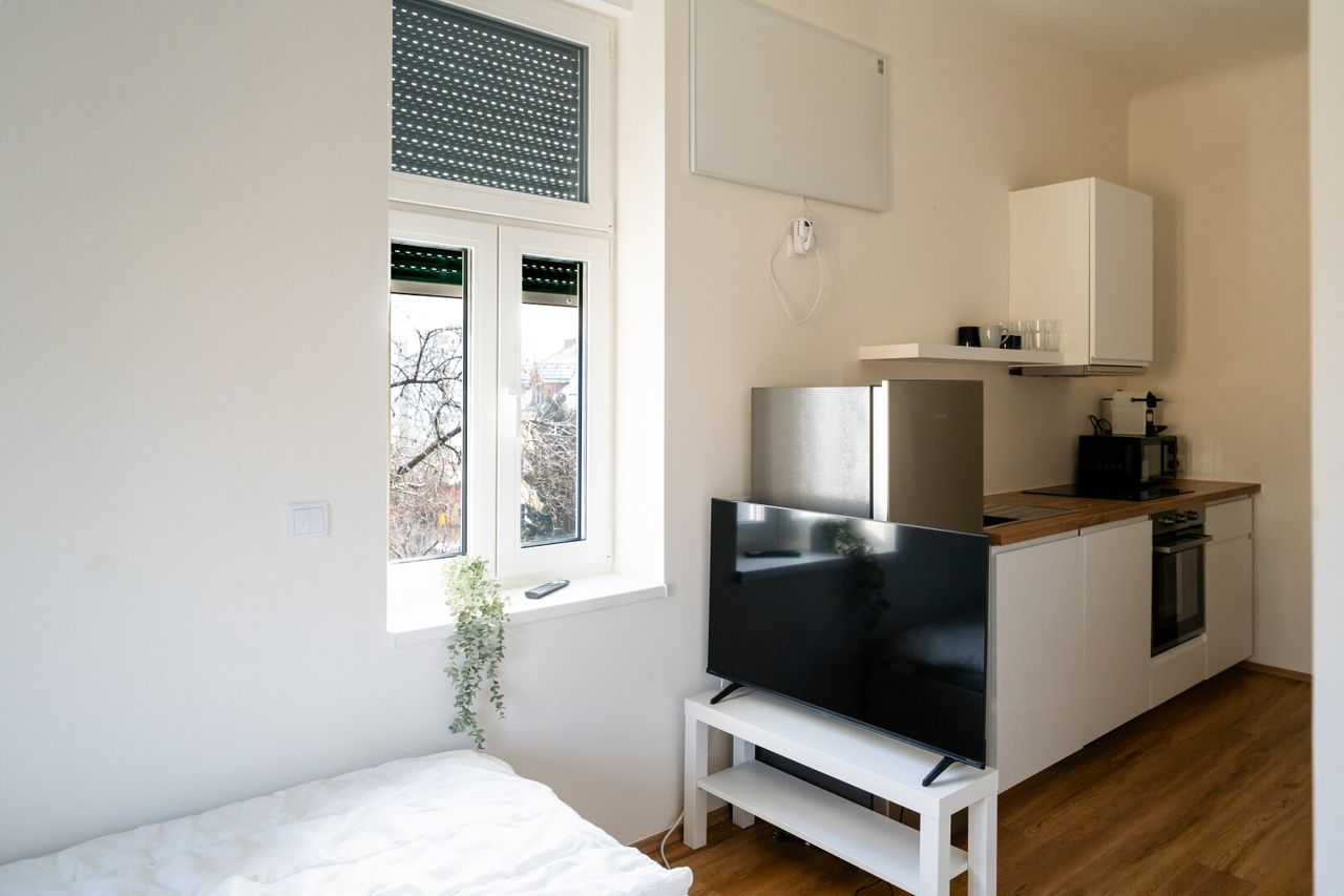 - Bett, Stauraum, Esstisch & Küche vorhanden