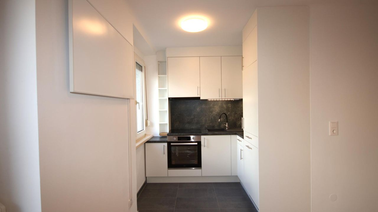 Durch die perfekte Raumaufteilung bietet diese Wohnung ausreichend Platz für Singles oder Paare. Die großen Fenster sorgen für eine helle und freundliche Atmosphäre.