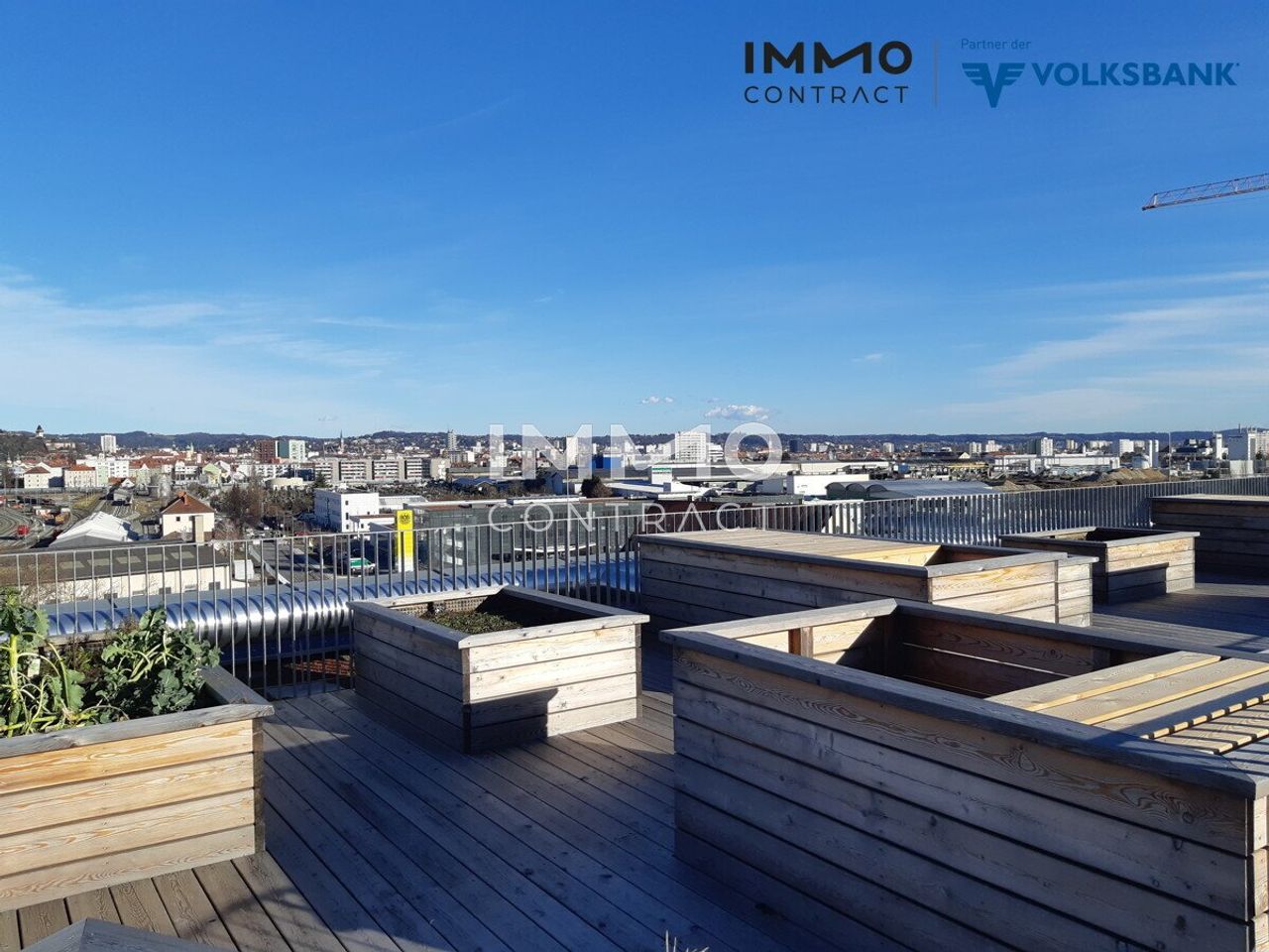 Die Wohnhausanlage Reininghaus Zehn verfügt über Photovoltaik und ein begrüntes Flachdach mit Möglichkeit für "urban gardening" in den zahlreichen Hochbeeten sowie eine Sonnenterrasse für die zukünftigen Bewohner des Hauses.