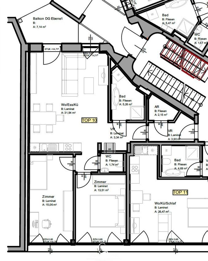 Diese exklusive Wohnung überzeugt durch eine durchdachte Raumaufteilung und hochwertige Ausstattung. Auf großzügigen 76,90 m² erwarten Sie drei helle Zimmer: ein einladender Wohn-/Essbereich mit moderner Küche, zwei weitere Zimmer, ein Badezimmer, ein separates WC sowie ein praktischer Abstellraum. Der Balkon bietet zudem einen traumhaften Blick auf den Schlossberg, während Sie aus den beiden weiteren Zimmern einen herrlichen Blick in den begrünten Park genießen können.