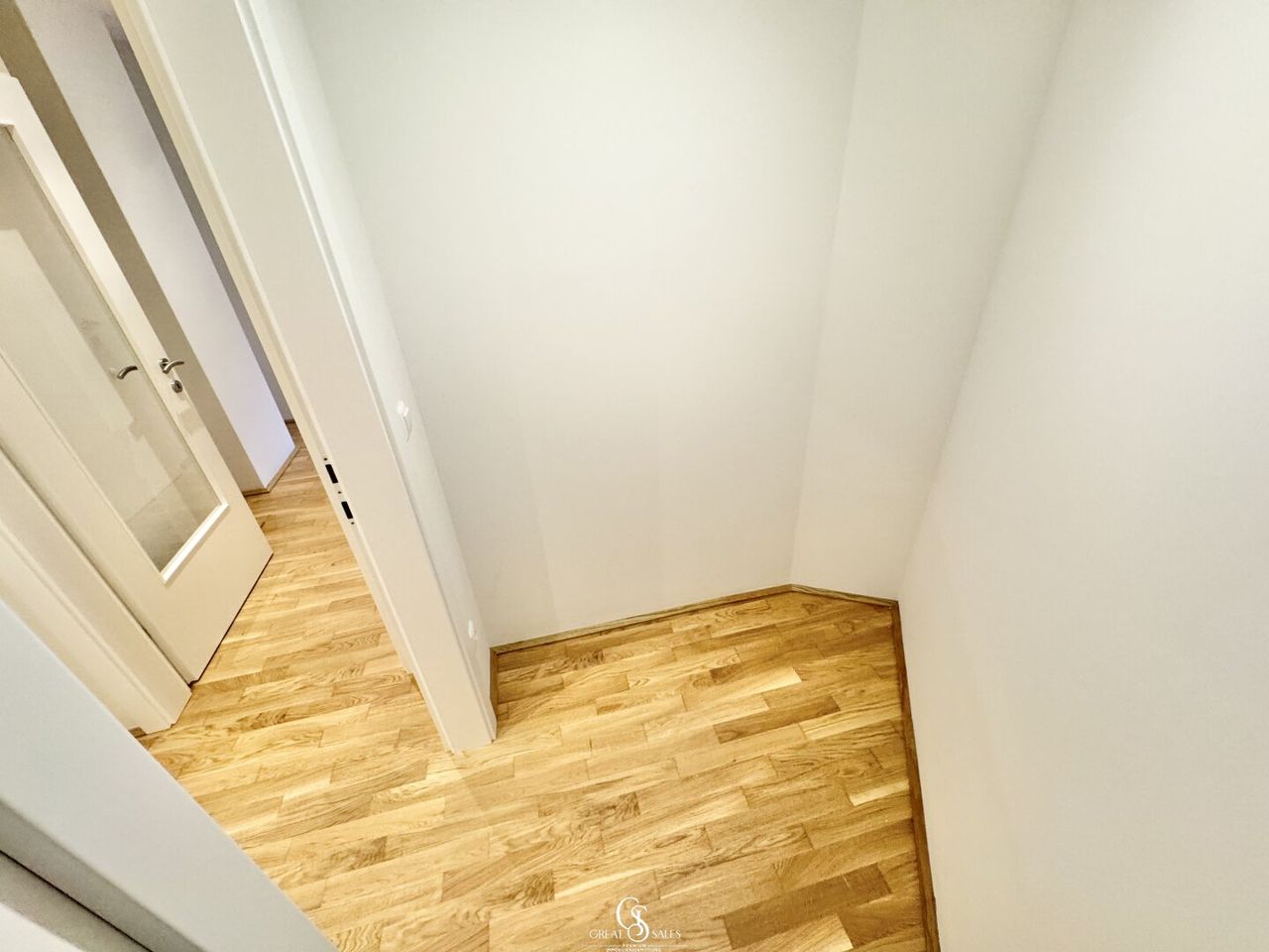 Die abgehängte Decke mit integrierten Lichtspots schafft ein stilvolles Ambiente, während der Aufzug im Haus zusätzlichen Komfort bietet. Sämtliche Fenster sind mit elektrischen Außenjalousien ausgestattet, die höchsten Wohnkomfort garantieren.