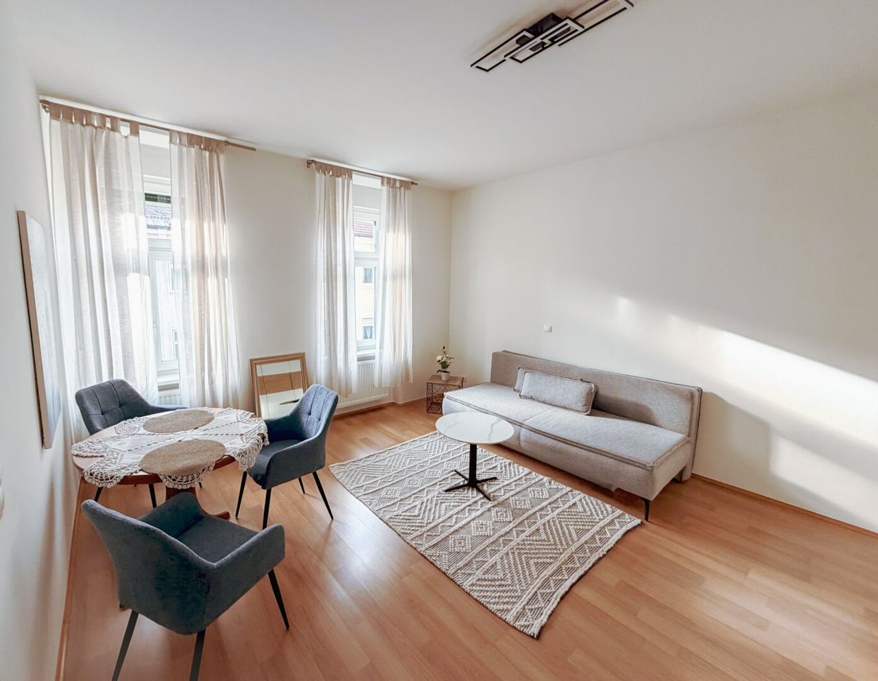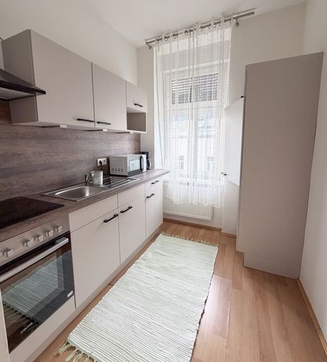 Die Wohnung befindet sich im 3. Obergeschoss eines Wohnhauses ohne Lift. Die vollständig sanierte Einheit bietet auf rund 32 m² Wohnfläche eine durchdachte Raumaufteilung: