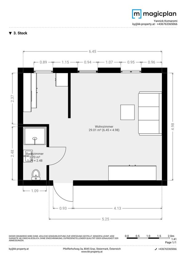 Die monatliche Gesamtmiete beträgt € 598,– und umfasst den Nettomietzins, die Betriebskosten, die Heizkosten sowie sämtliche gesetzlichen Abgaben. Die Kosten für Strom sind nicht inkludiert und werden separat direkt mit dem jeweiligen Energiedienstleister abgerechnet.