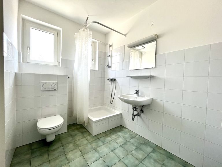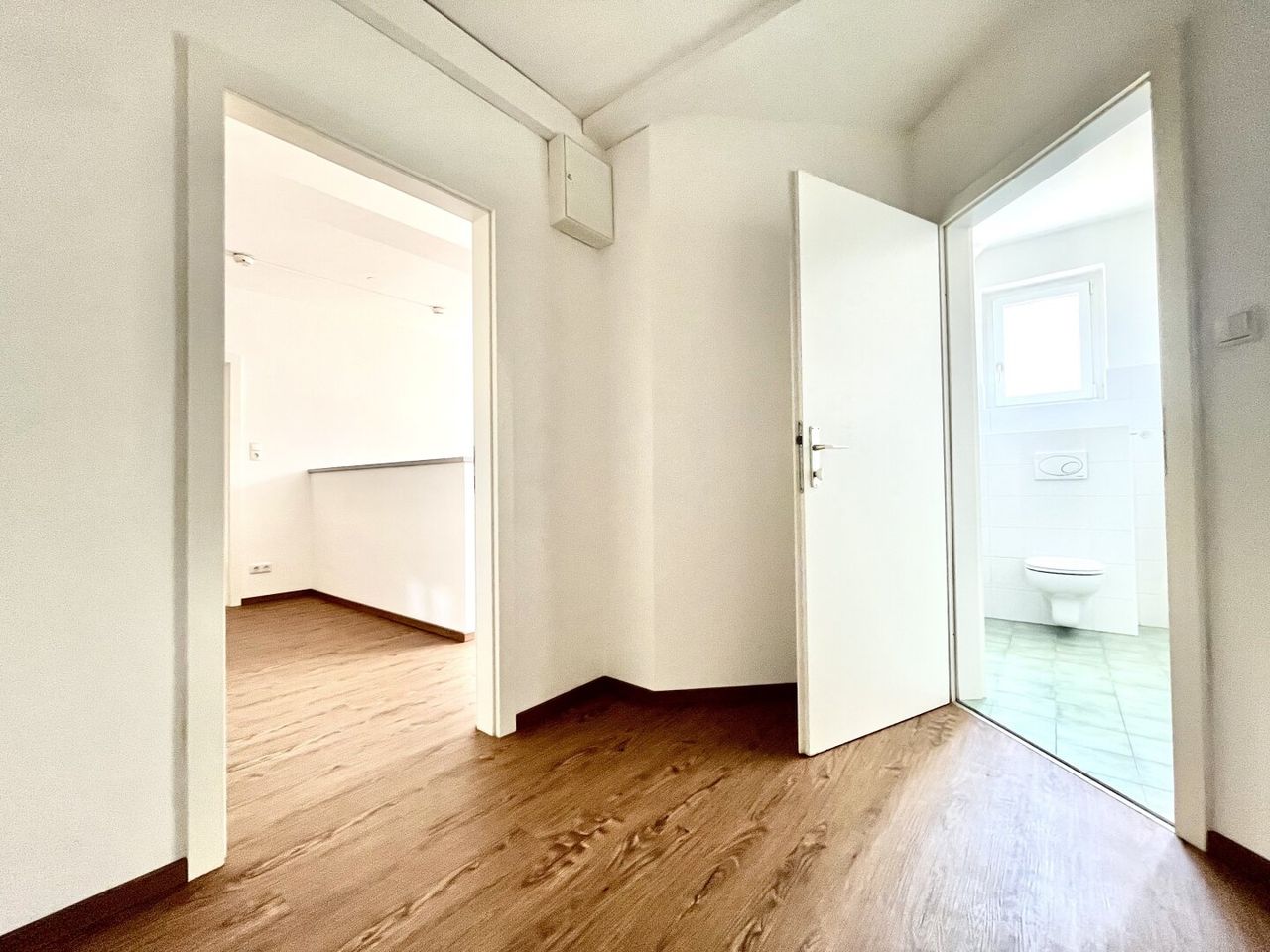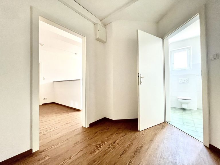 Aufgeteilt ist die Wohnung in einen Wohnraum mit Essplatz und Küche, ein Schlafzimmer, ein Bad mit Dusche und WC und einen Vorraum. Zusätzlich besteht die Möglichkeit, im Innenhof Autoabstellflächen anzumieten.