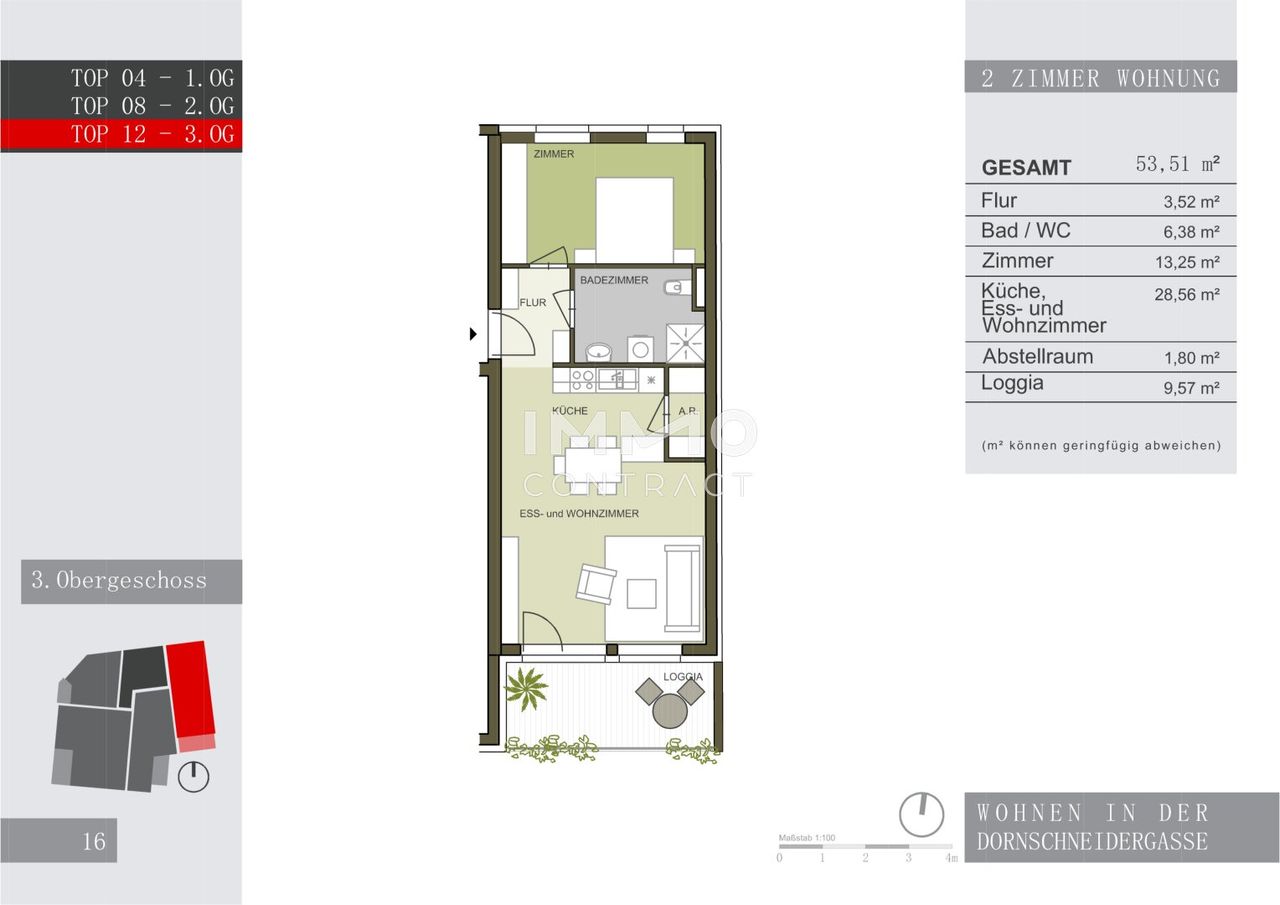 Diese ca. 53,51 m² große, geförderte Wohnung befindet sich im 3ten Lift-Stock in ruhiger Innenhoflage, in der Dornschneidergasse 31 in einem neuwertigen Wohnhaus mit gesamt nur 18 Wohnungen. RAUMAUFTEILUNG: Diese Wohnung verfügt über einen Flur, eine geräumige Wohnküche mit direktem Zugang zum Balkon, ein Schlafzimmer, ein geräumiges Badezimmer und einen Abstellraum. Dieser Wohnung ist auch ein Kellerabteil zugeordnet. Ein Fahrradraum steht den Hausbewohnern auch zur Verfügung. AUSSTATTUNG: zentrale Fußbodenheizung, Parkett- und Fliesenboden, Kunststofffenster, Außenjalousien, moderne Küche inklusive aller Elektrogeräte, Badezimmer unter anderem mit einem Waschmaschinenanschluss und einer Dusche. LAGE: Mit seiner guten Infrastruktur und Verkehrsanbindung kann das Wohnhaus überzeugen. Mit...