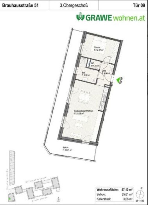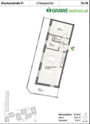 57 m² Wohnung in der Brauhausstraße 51 im 3. OG mit Lift und großen BALKON bestehend aus,
