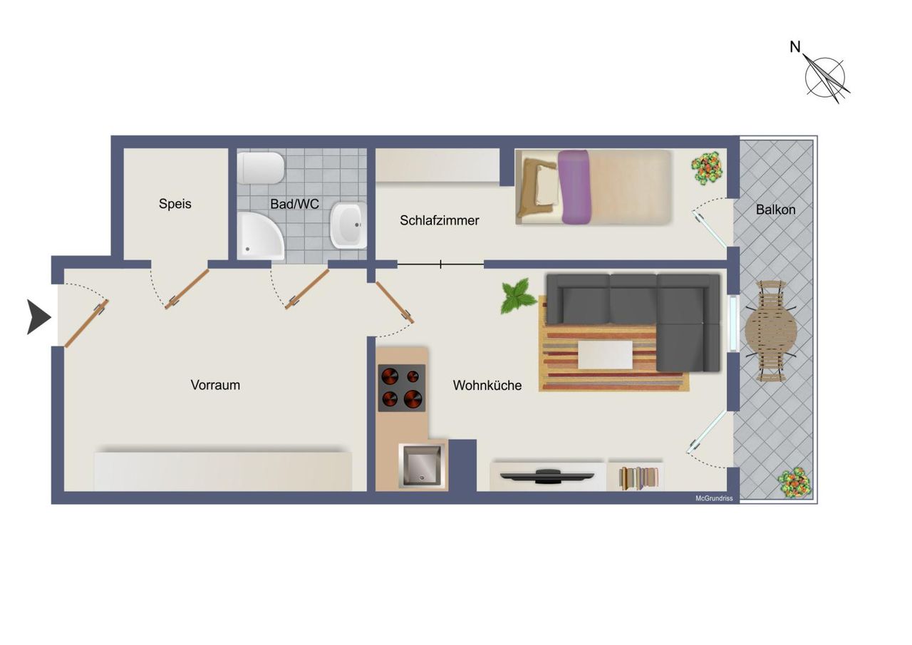 Die Wohnung liegt im Erdgeschoss des Hauses und gliedert sich in folgende Räumlichkeiten: