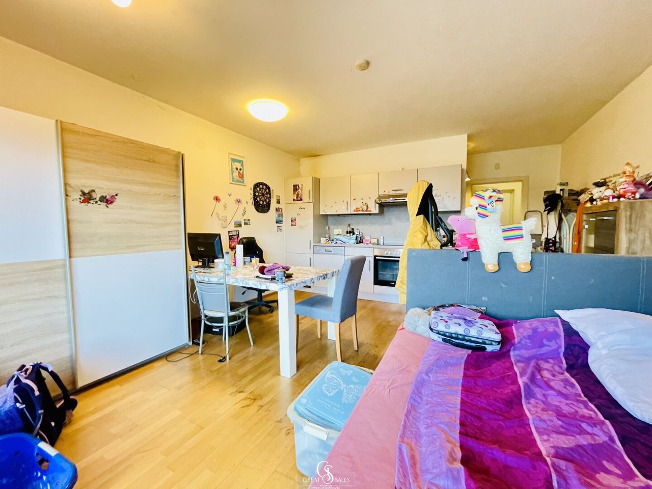Der offene Wohn-/Schlafbereich ist lichtdurchflutet und bietet genügend Raum für gemütliche Stunden mit Familie und Freunden. Die moderne und praktisch eingerichtete Einbauküche ist mit allen zeitgemäßen Elektrogeräten ausgestattet und bietet viel Stauraum.