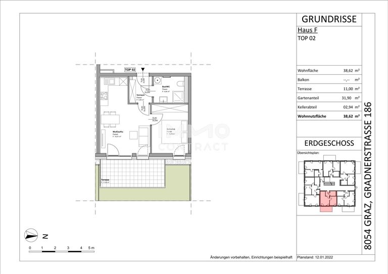 Diese ca. 38,20 m² große Wohnung befindet sich im EG des Hauses Gradnerstraße 186F in einer modernen, neuwertigen Wohnanlage.