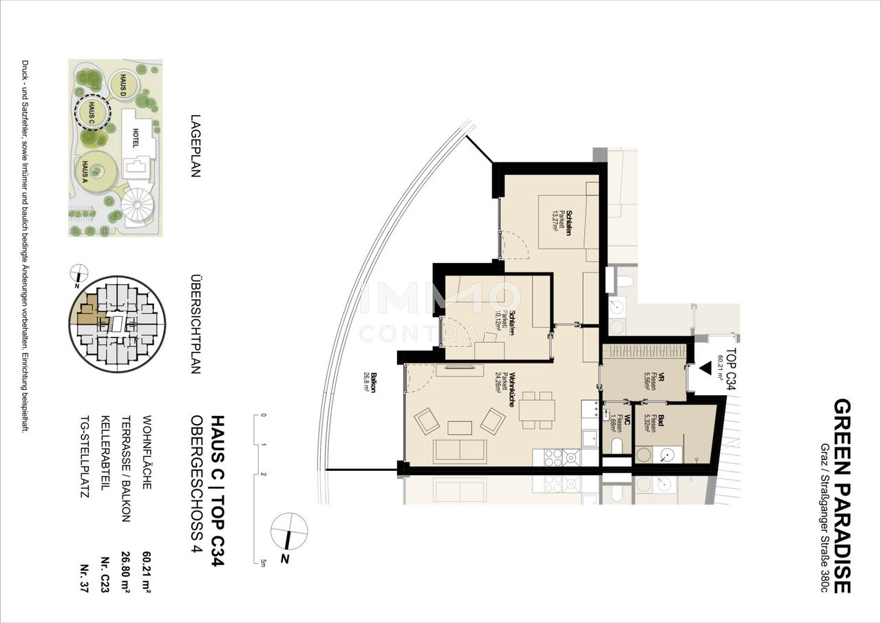 PARKEN: Bei Bedarf kann ein Tiefgaragenplatz (ab € 95.-) gesondert angemietet werden