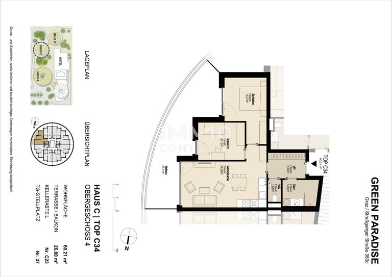 Diese ca. 60,21 m² große, geförderte 3-Zimmer Wohnung befindet sich im 4.OG des Hauses Straßganger Straße 380c in einem modernen, neuwertigen Wohnhaus.
