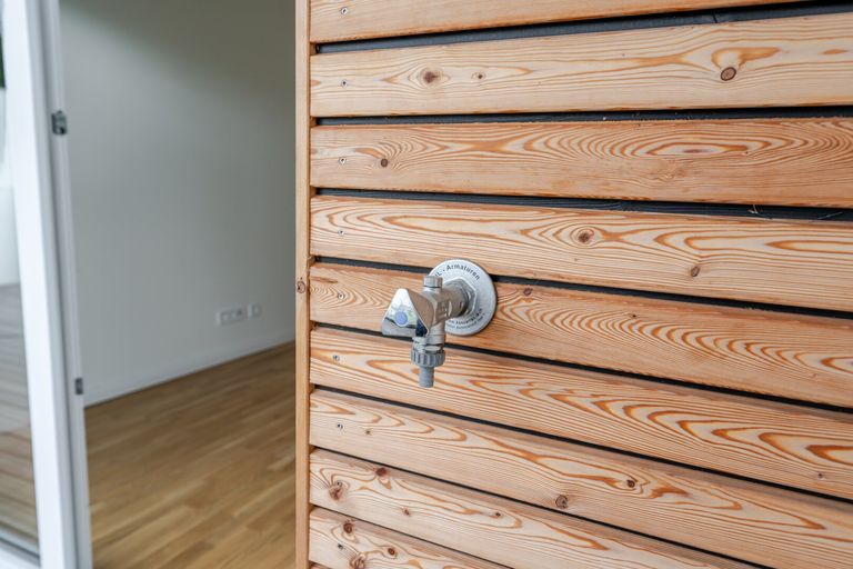 Großer Terrasse mit Wasser- und Stromanschluss – ideal für entspannte Abende oder kreative Outdoor-Projekte