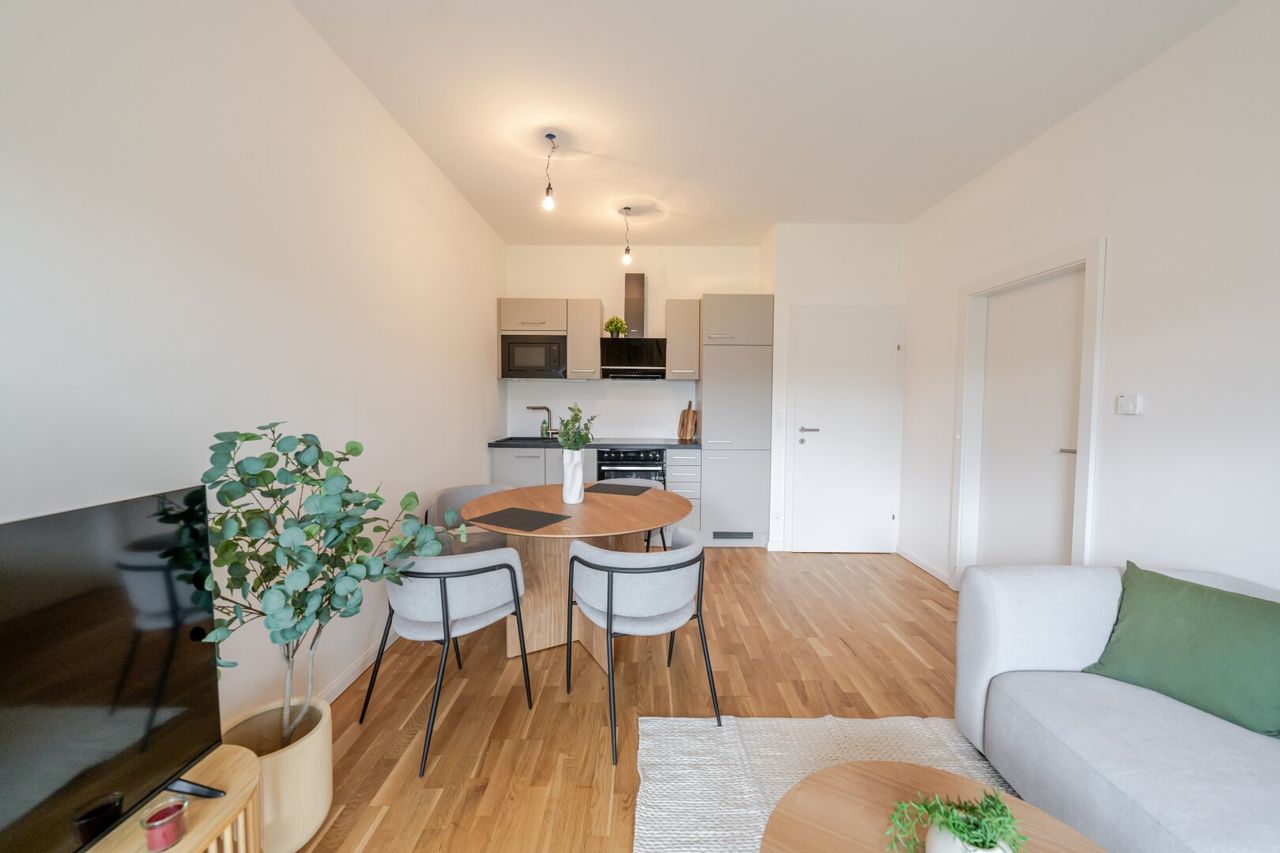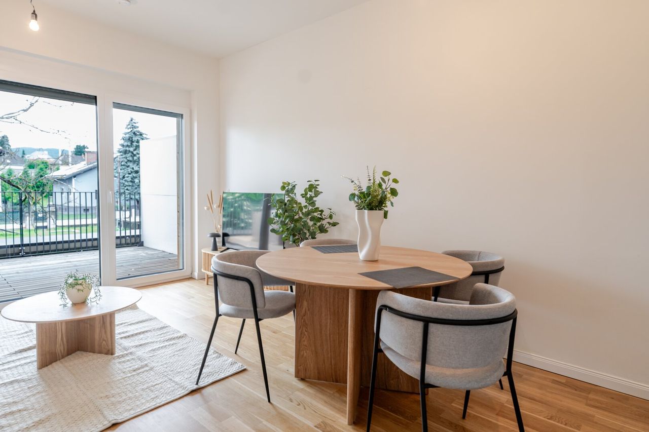 Modern möblierte 2-Zimmer-Wohnung mit großer Terrasse & Tiefgaragenplatz – flexibler Mietzeitraum!