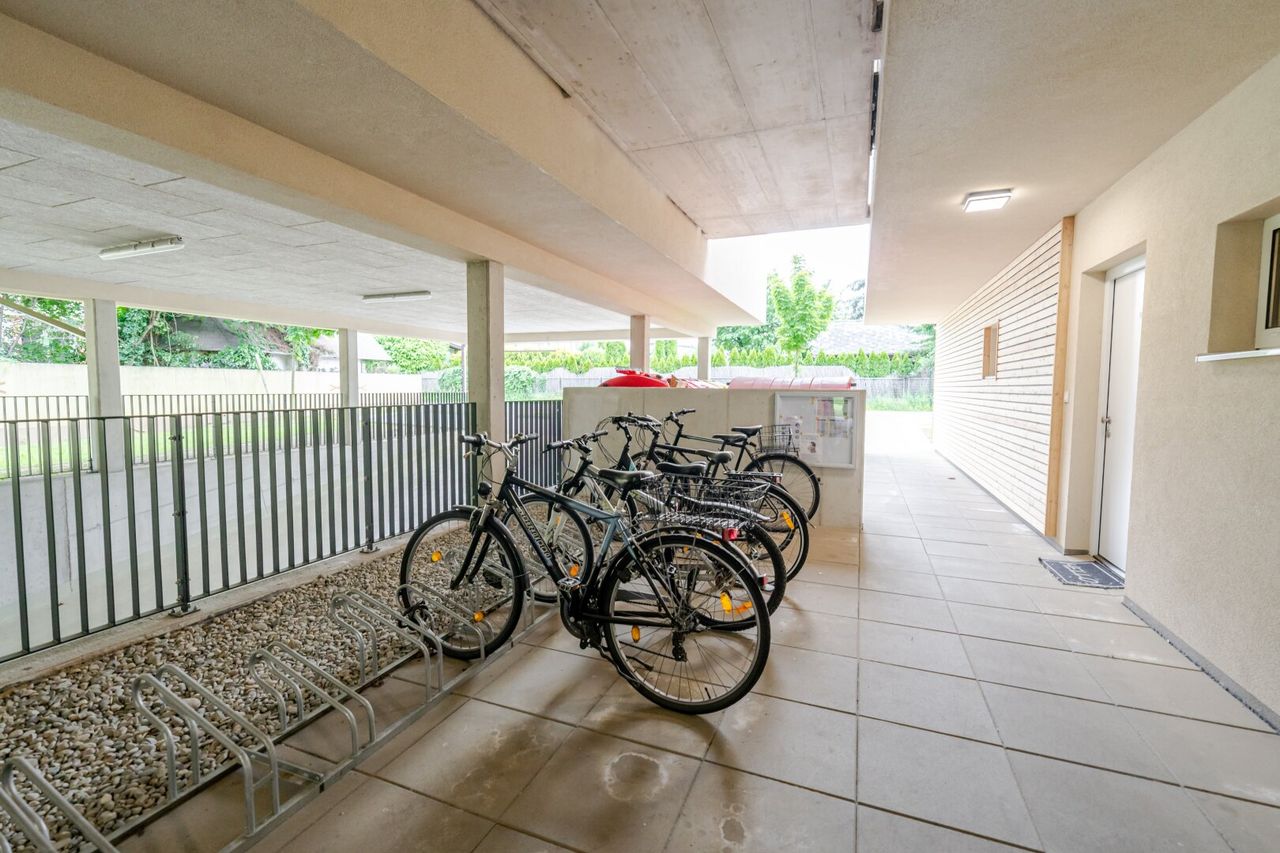 Das Herzstück der Wohnung ist der offene Wohn-Ess-Bereich mit einer voll ausgestatteten, modernen Küche. Besonders hervorzuheben ist die großzügige Terrasse mit Wasser- und Stromanschluss – perfekt für gemütliche Sommerabende, Pflanzenliebhaber oder kleine DIY-Projekte im Freien. Das Badezimmer ist hochwertig ausgestattet und wird um eine Duschwand sowie einen praktischen Spiegelschrank ergänzt. Eine separate Toilette sowie ein Abstellraum sorgen für zusätzlichen Komfort im Alltag.