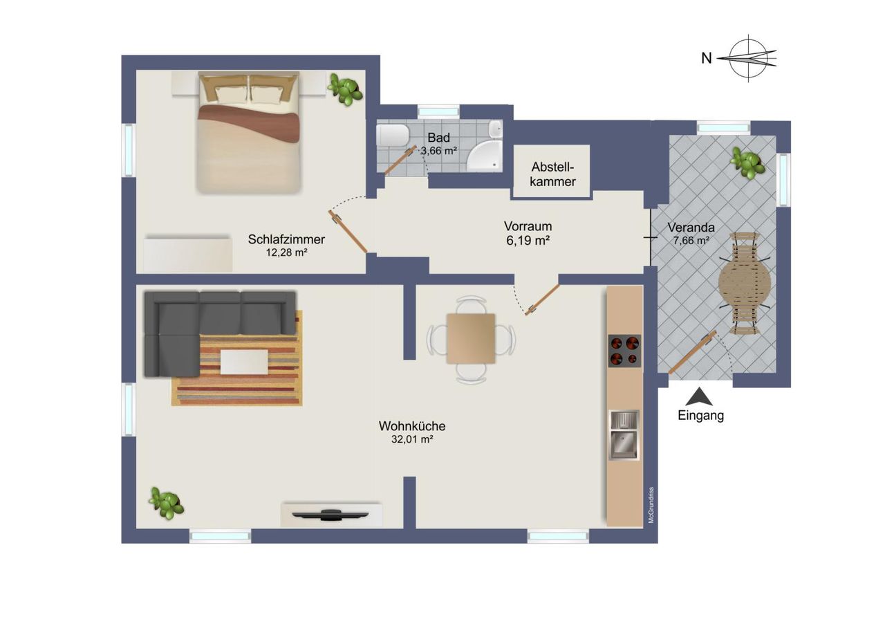 Sanierte 2-Zimmer-Wohnung mit Garten in ruhiger Lage