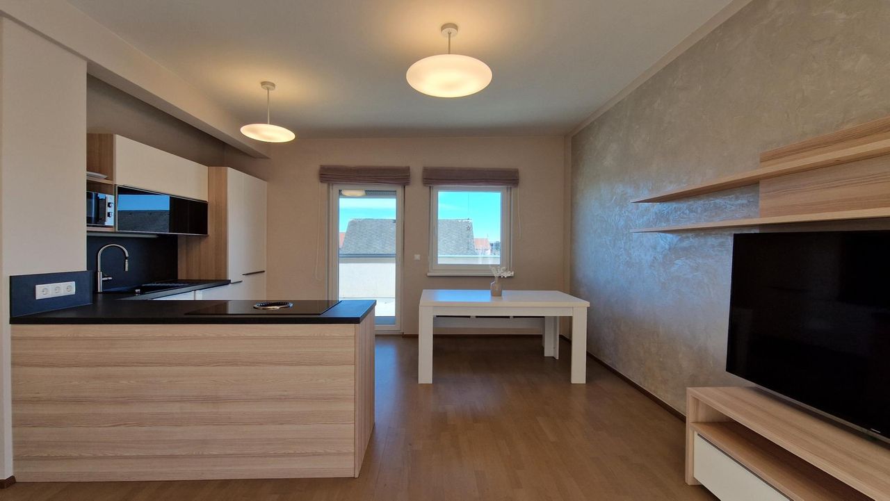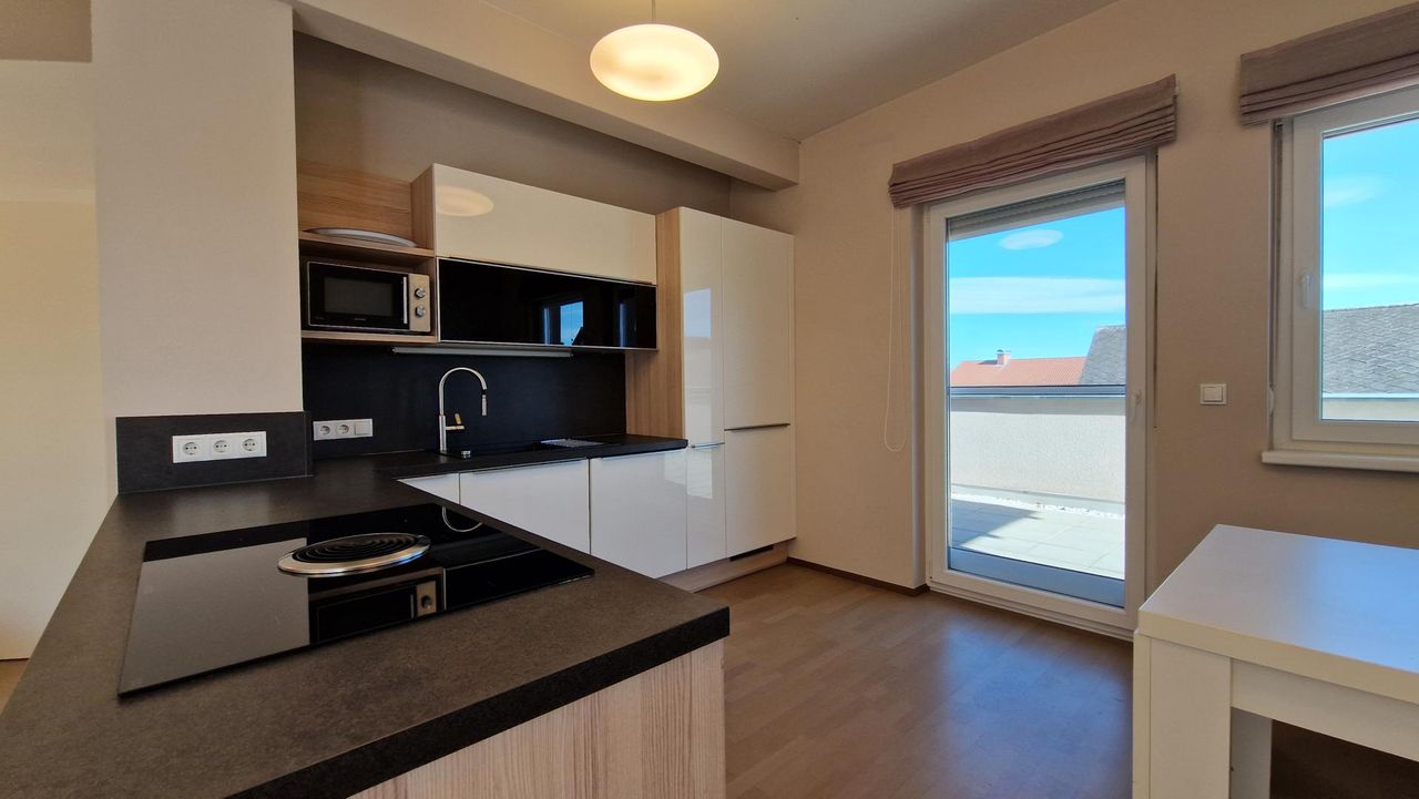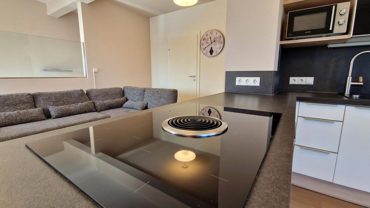 Das Herzstück der Wohnung bildet der lichtdurchflutete Wohn-Essbereich mit großzügiger Fensterfront und direktem Zugang zur sonnigen Terrasse. Die moderne, designvolle Küche fügt sich harmonisch in den Raum ein und erfüllt höchste Ansprüche an Funktionalität und Ästhetik.