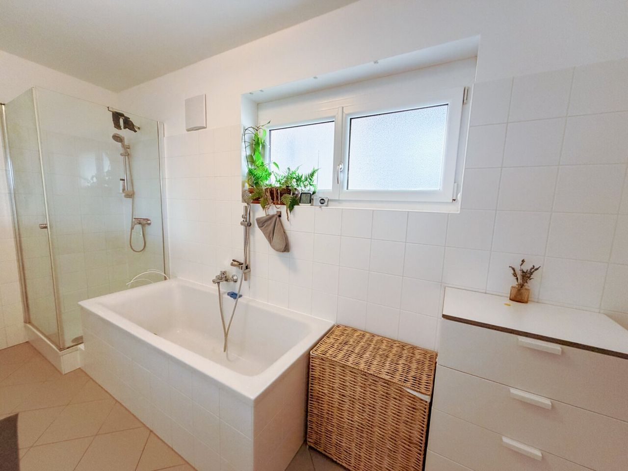 - Badezimmer mit Dusche und Wanne