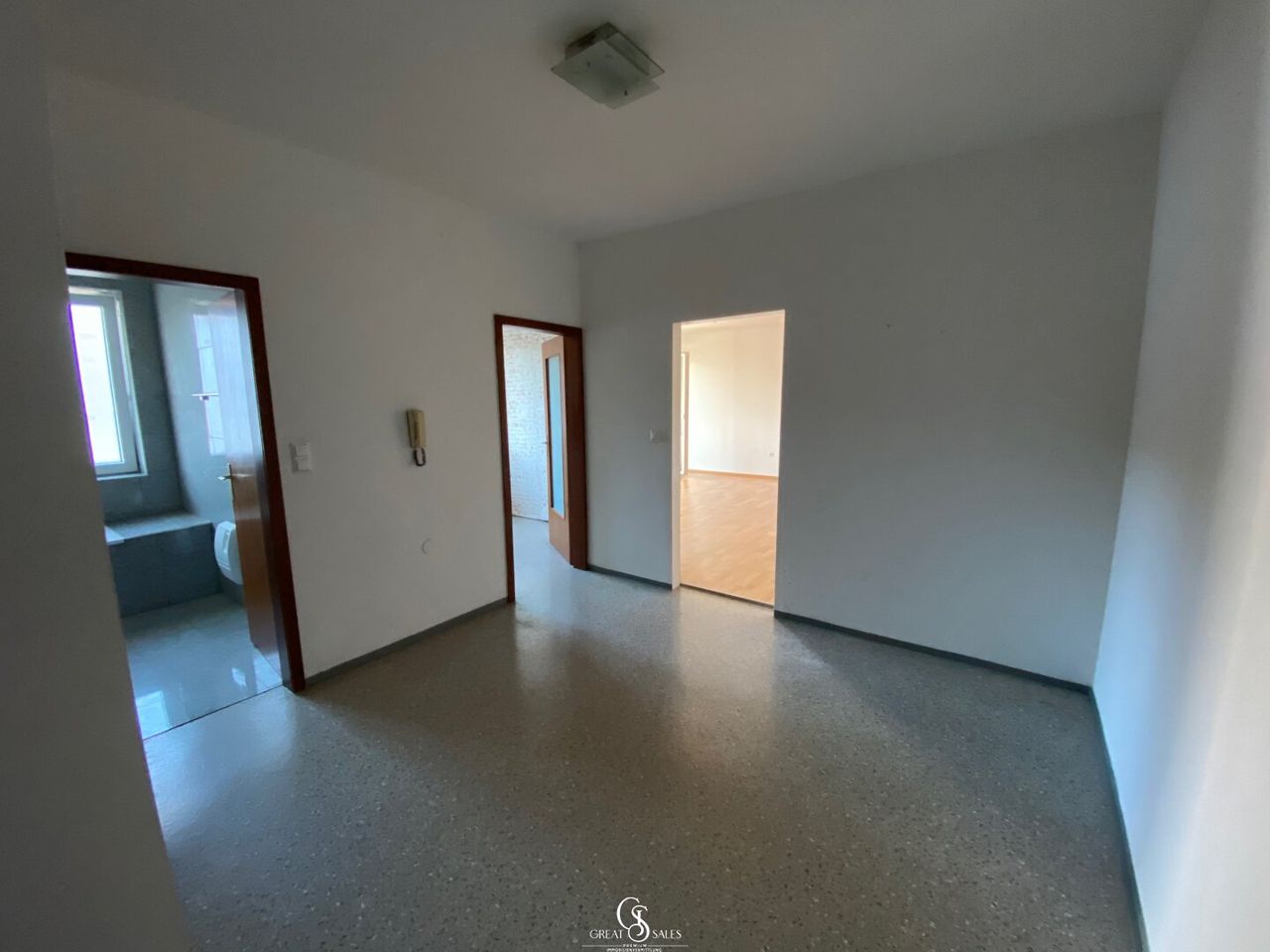 Der Vorraum erschließt sämtliche Räume. Das Wohnzimmer ist großzügig geschnitten und verfügt über einen direkten Zugang zum Balkon, der zusätzlichen Außenraum schafft. Die Küche ist separat angelegt und eignet sich sowohl zum Kochen als auch als kleiner Essbereich.