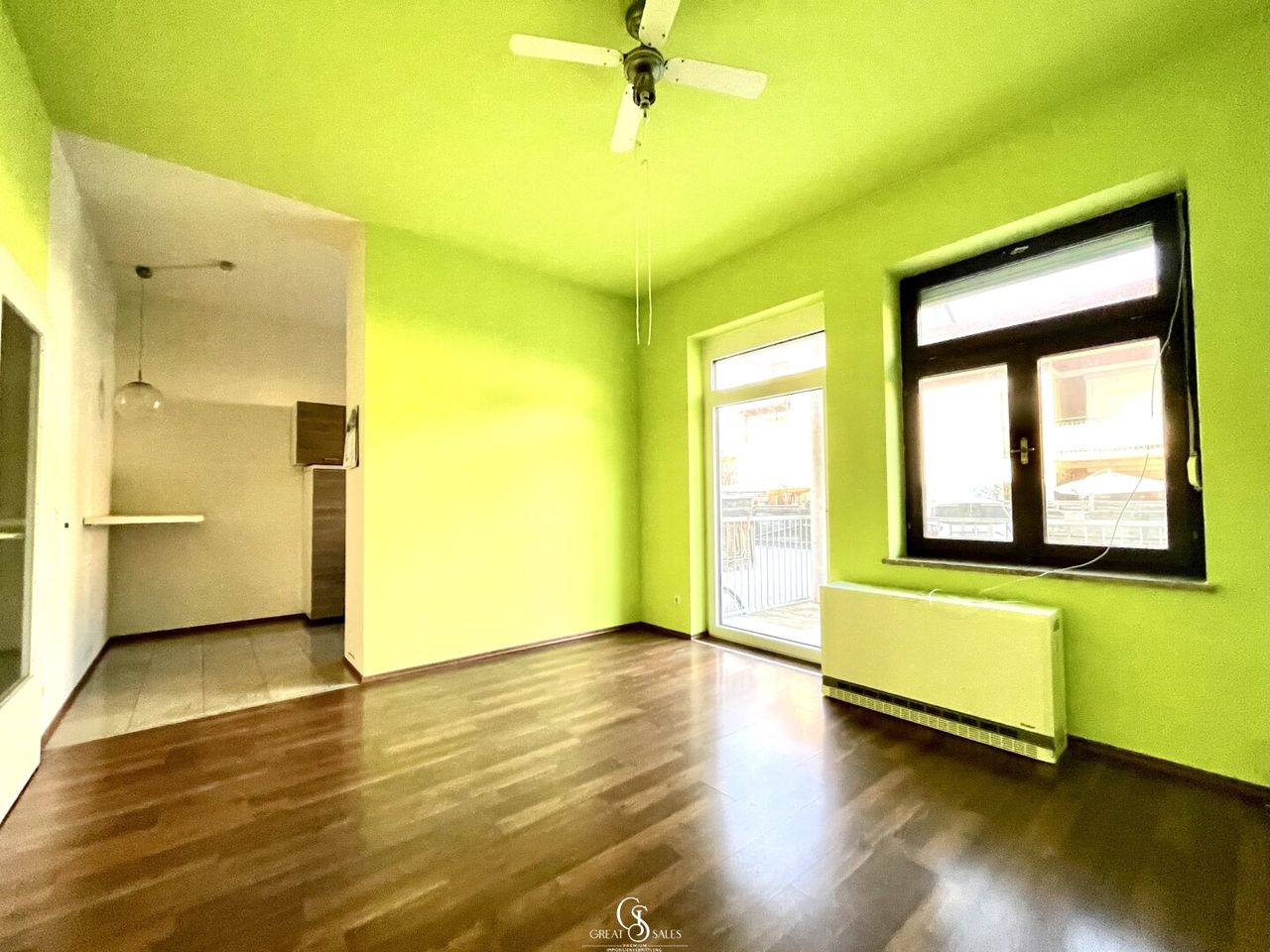Das Wohnzimmer ist großzügig geschnitten und verfügt über einen direkten Zugang zum Balkon, der zusätzlichen Außenraum schafft.