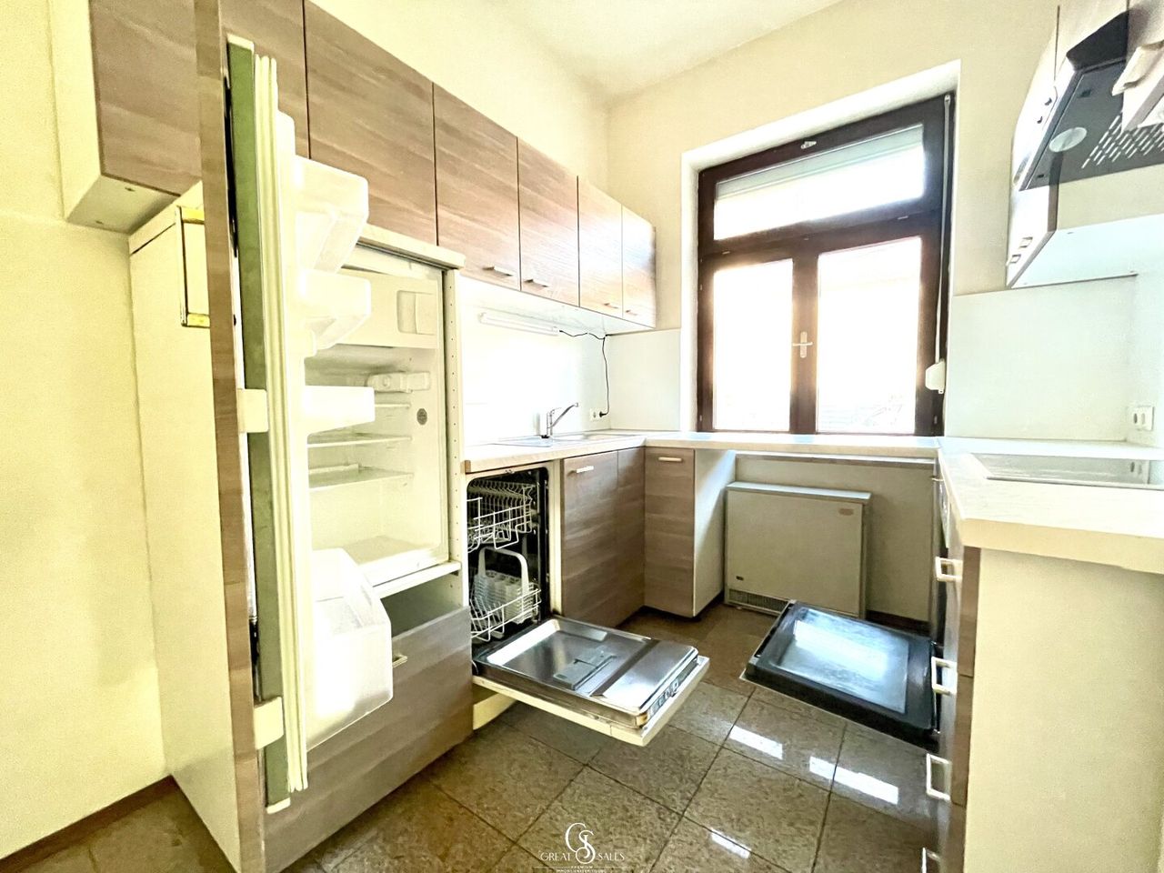 Die Küche ist separat angelegt und eignet sich sowohl zum Kochen als auch als kleiner Essbereich. Die Einbauküche ist mit allen zeitgemäßen Elektrogeräten ausgestattet.