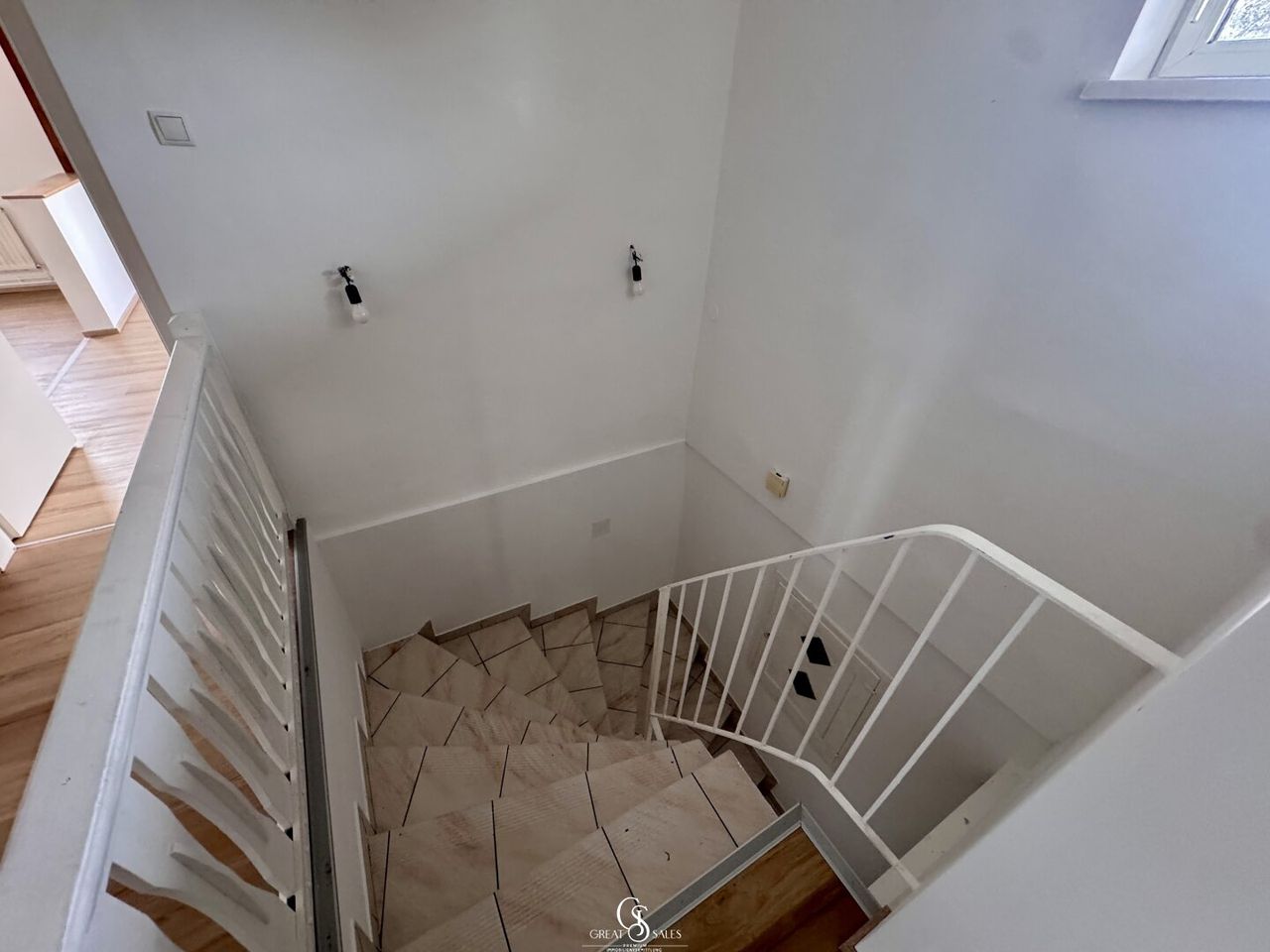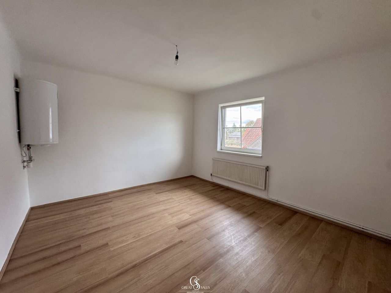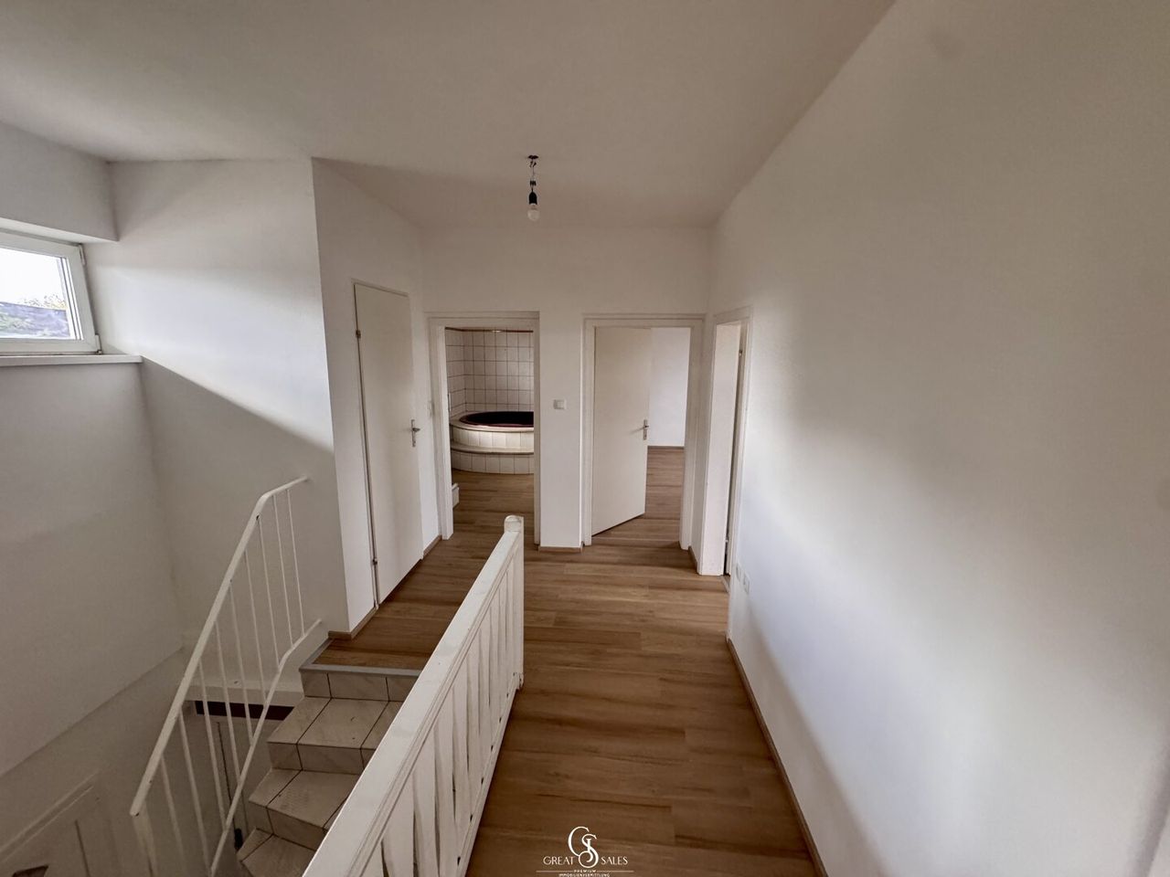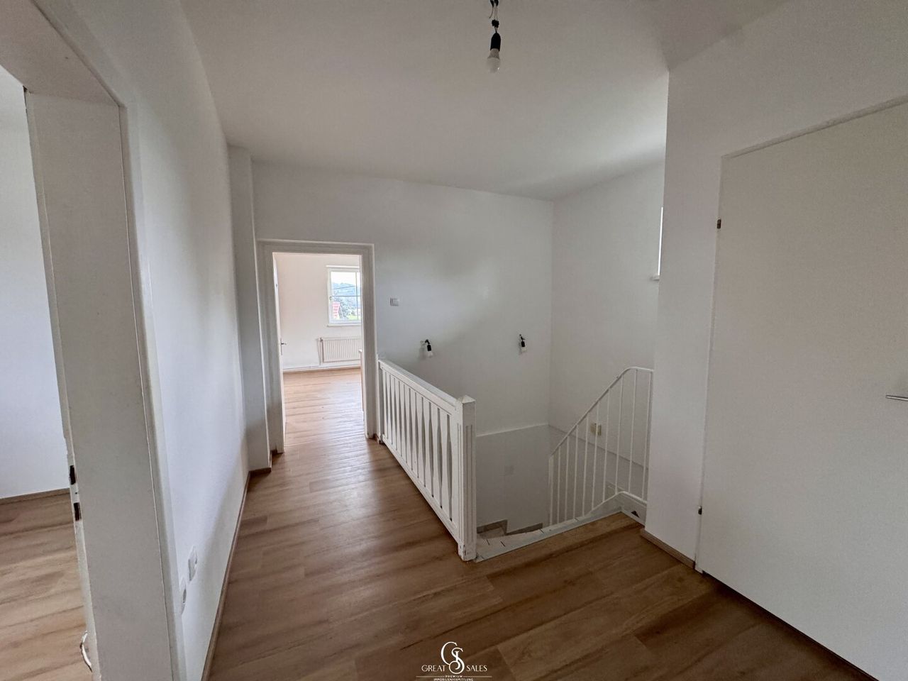 Die Eingangstür liegt im Erdgeschoss, von wo aus Sie über eine innenliegende Treppe in den hellen und gut strukturierten Wohnbereich im Obergeschoss gelangen. Dort erwartet Sie folgende Raumaufteilung: