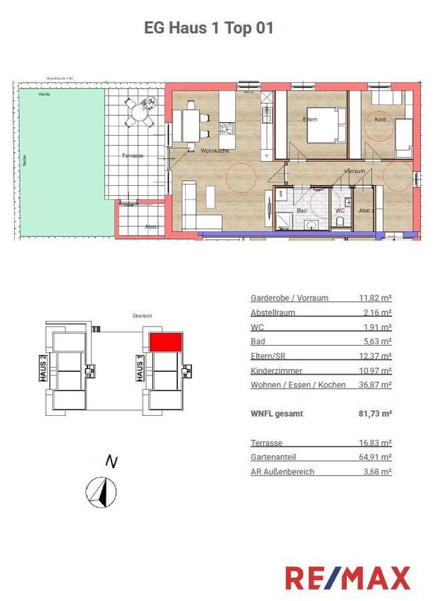 • Ca. 82 m² Wohnfläche und ca. 65 m² Gartenanteil