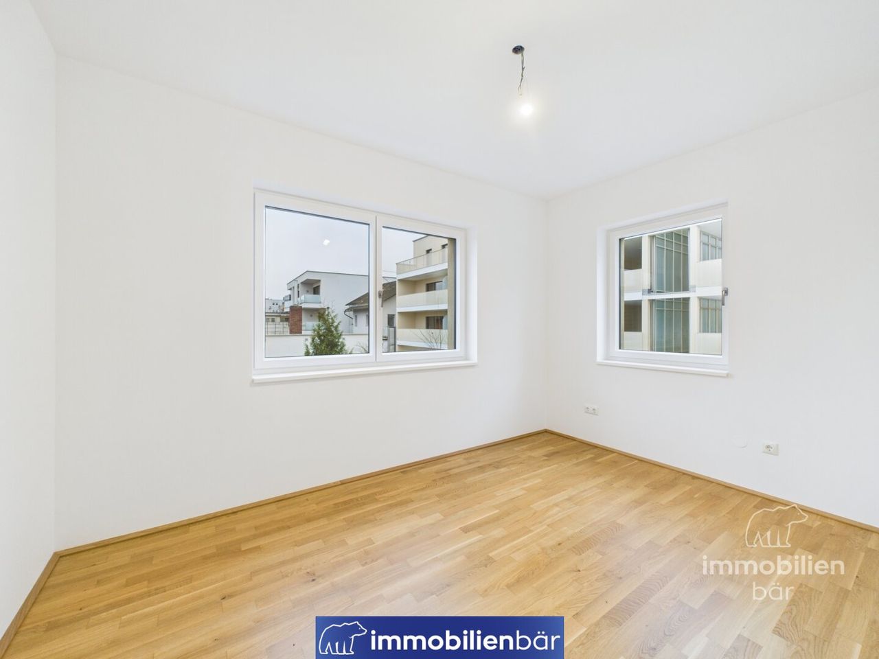 Fußbodenheizung, 3-Scheiben-Verglasung, Eichenparkett, elektrische Raffstores