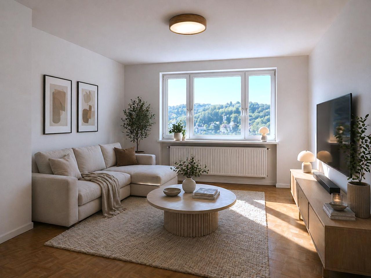 großes Wohnzimmer mit Aussicht