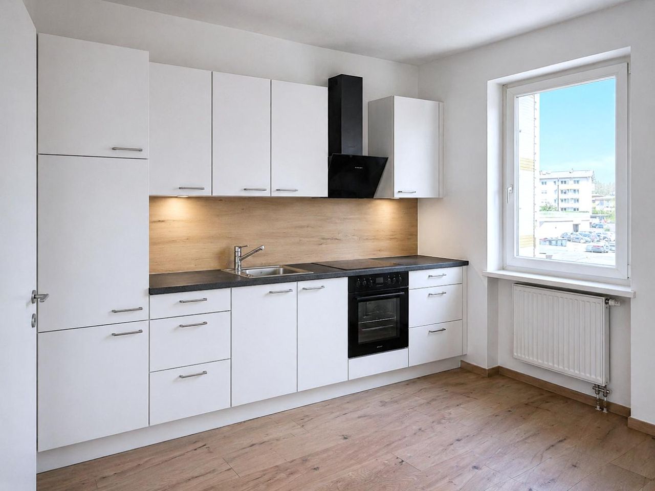 Die Wohnung ist mit einer neuen Küche ausgestattet.
