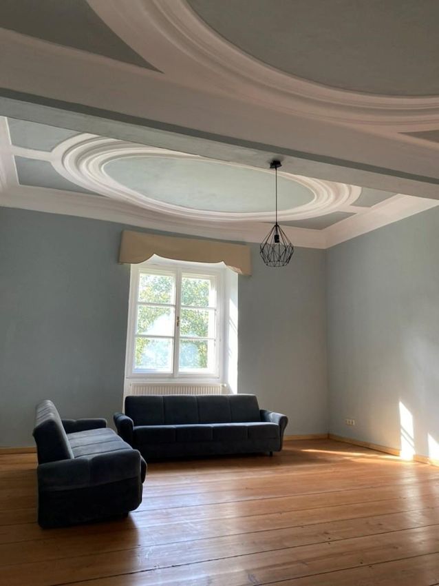In einer eindrucksvollen Villa aus dem Jahr 1627 wartet diese außergewöhnliche 160 m² große Mietwohnung auf neue Bewohner. Das Gebäude zählt zu den ältesten historischen Objekten in der Region und wurde über die Jahrhunderte hinweg sorgsam erhalten. Bereits beim Betreten spürt man den unverwechselbaren Charme: hohe Räume, großzügige Grundflächen und ein authentisches historisches Flair, das modernen Häusern selten gelingt.