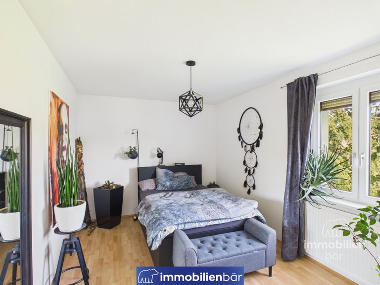 Der Wohnbereich bietet ein besonders gemütliches Ambiente: Neben der Gasheizung sorgt ein Holzofen im Wohnzimmer für angenehme Wärme und hilft dabei, Heizkosten effizient zu reduzieren.
