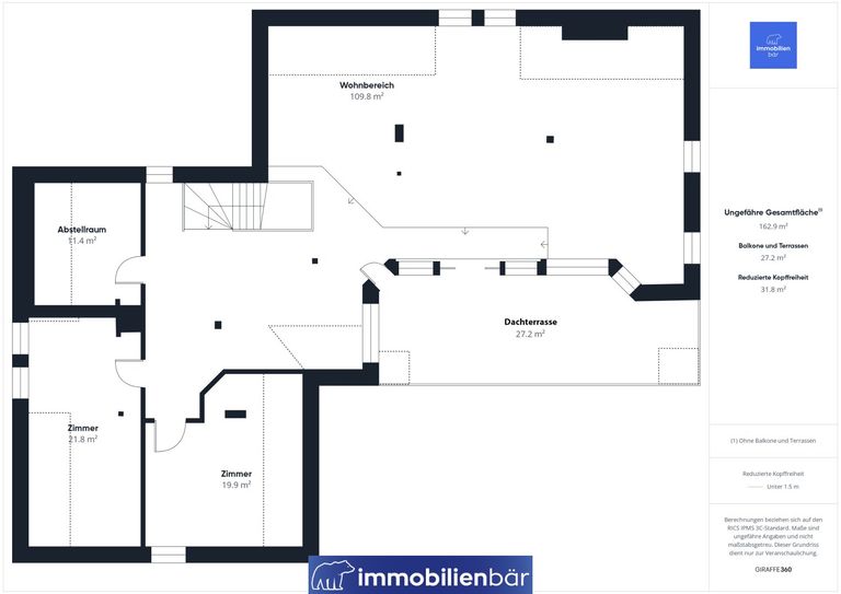 » Ca. 27,2m2 große Dachterrasse mit Weitblick