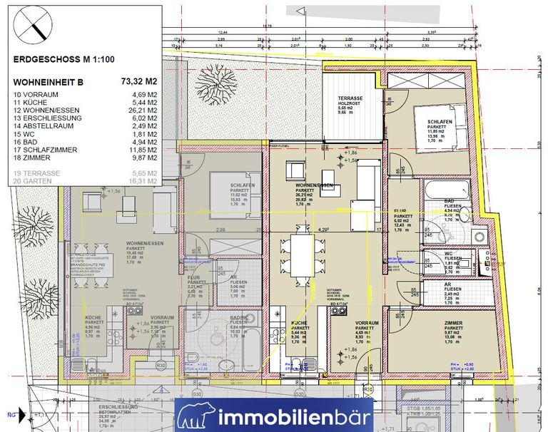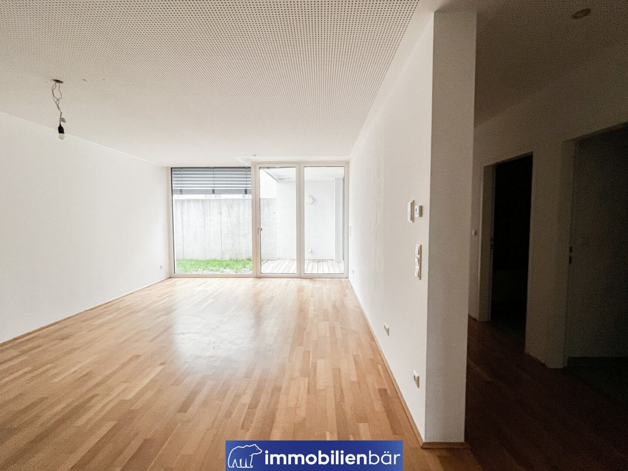 Ein weiteres Plus dieser Wohnung ist der Garten mit überdachter Terrasse. Hier können Sie die Sonne genießen, entspannen und ungestört Zeit im Freien verbringen. Der außenliegende Sonnenschutz sorgt dafür, dass Sie an heißen Tagen angenehm schattige Plätze finden.